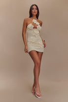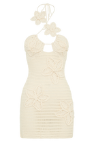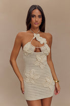 Elevate your style with the enchanting KYLA Floral Crochet Mini Dress, a captivating piece that exudes femininity and grace. The functional halter design adds a touch of allure and allows for customisable styling, while the delicate crochet flower appliqué enhances the dress with a romantic and whimsical feel. Unlined for a lightweight and airy fit, this dress is perfect for warm-weather events. The fishtail hem shape adds a dramatic and elegant flair, creating a stunning silhouette that is sure to turn heads. With its mini length, this dress offers a timeless and sophisticated look, making it ideal for special occasions or an elevated everyday ensemble.