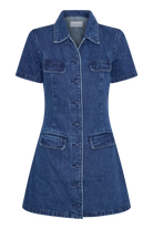 Leighton Denim Button Down Mini Dress - Dark Blue