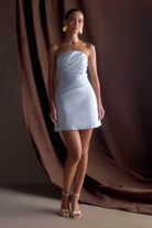 Leslie Gathered Taffeta Mini Dress - Frosted Blue