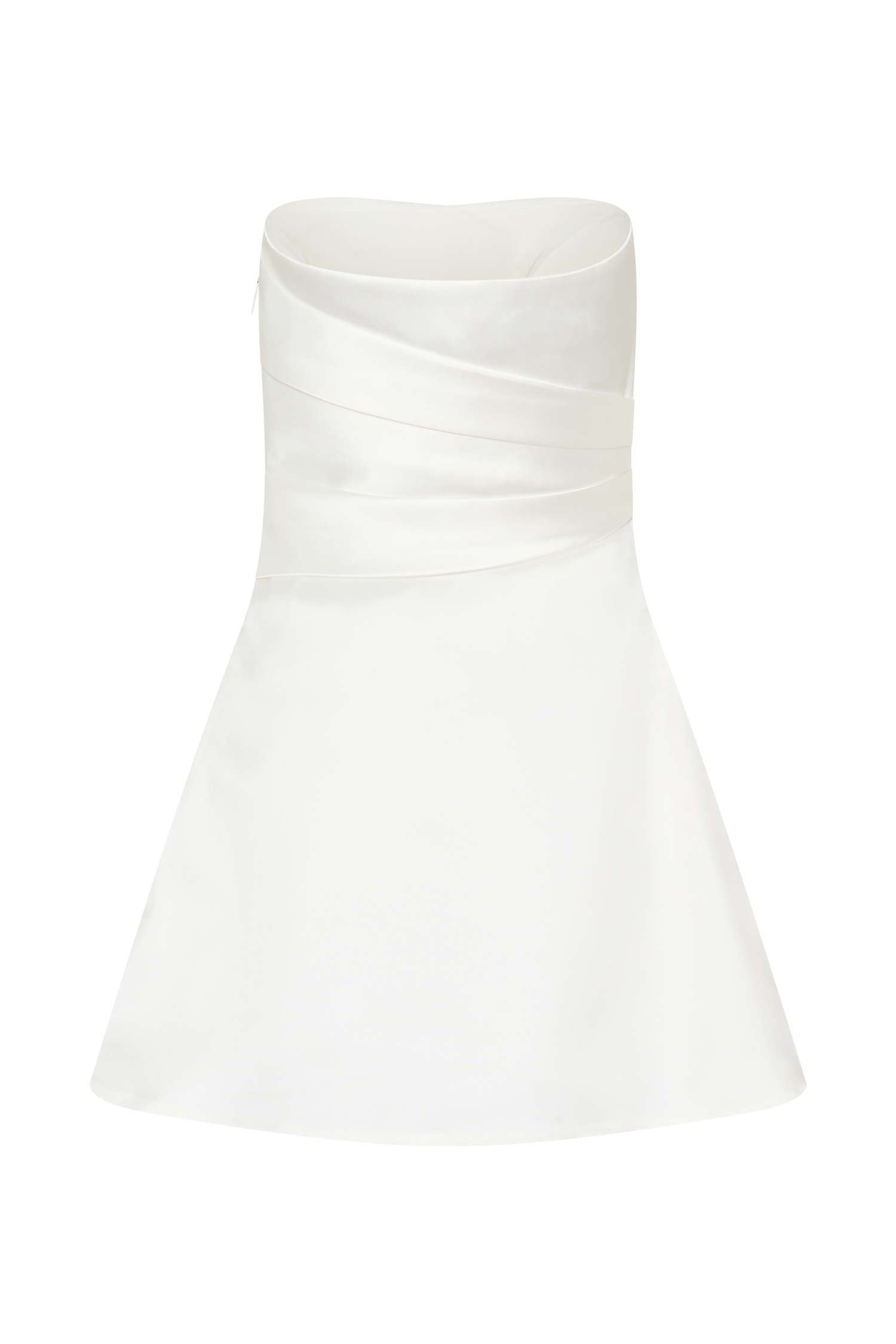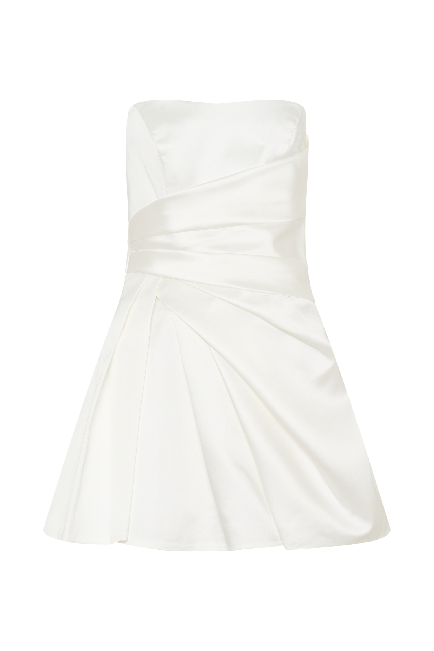 The LORA Strapless Satin Mini Dress is the perfect balance of modern minimalism and timeless elegance. Designed with a sculpted, fitted bodice, this strapless silhouette enhances the figure with effortless sophistication. The gathered side waist detail adds soft dimension, while an internal elastic waist stay ensures a secure and flattering fit. Fully lined for a seamless finish and complete with a discreet side zip and hook-and-eye closure, the Lora dress is the ultimate choice for elevated evenings, cocktail hours, and unforgettable nights out.