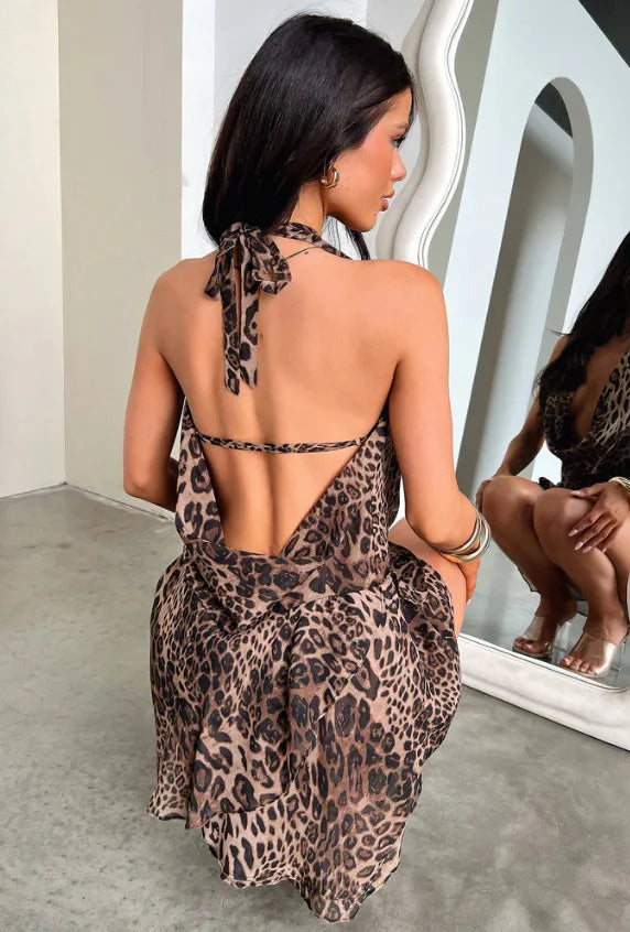 Radiant and Stylish: The Luxe Leopard Halter Mini Dress