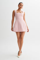 Embrace chic sophistication with the LYSANDRE Crepe Mini Dress, a timeless piece designed to captivate with its understated elegance. Featuring a square neckline that exudes modern allure, this dress accentuates your décolletage with grace. The cinched waist creates a flattering silhouette, highlighting your curves with feminine charm. With a bubble skirt shape, it adds a playful touch to your ensemble while maintaining a sense of sophistication. Complete with a side zipper for ease of wear, this dress ensures a seamless fit for any occasion. Lined for comfort and coverage, it offers a luxurious feel against your skin. Whether you're attending a cocktail party or a special event, the Lysandre Crepe Mini Dress is sure to make a statement with its timeless style and undeniable allure.
