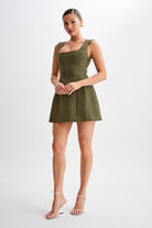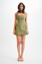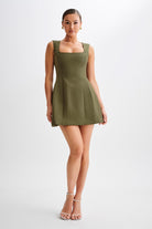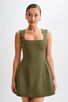 Embrace chic sophistication with the LYSANDRE Crepe Mini Dress, a timeless piece designed to captivate with its understated elegance. Featuring a square neckline that exudes modern allure, this dress accentuates your décolletage with grace. The cinched waist creates a flattering silhouette, highlighting your curves with feminine charm. With a bubble skirt shape, it adds a playful touch to your ensemble while maintaining a sense of sophistication. Complete with a side zipper for ease of wear, this dress ensures a seamless fit for any occasion. Lined for comfort and coverage, it offers a luxurious feel against your skin. Whether you're attending a cocktail party or a special event, the Lysandre Crepe Mini Dress is sure to make a statement with its timeless style and undeniable allure.