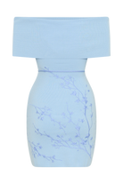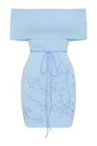 Mallory Off Shoulder Embroidered Knit Mini Dress - Ice Blue