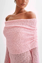 Marisol Off Shoulder Boucle Mini Dress - Baby Pink