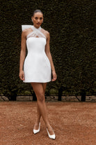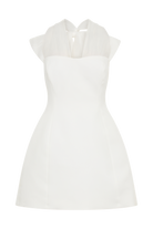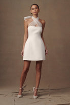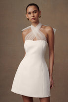 Step into elegance with the MARYAM Tulle Bow Mini Dress, where sophistication meets romance in a harmonious fusion. Adorned with a princess neckline and a fitted bodice, this dress exudes timeless allure. Lined for comfort, it features an A-line skirt that ensures a flattering silhouette for any figure. Adding a touch of whimsy and charm, the mesh functional halter with a tulle-lined back bow captivates attention. Finished with a convenient centre back zip, the Maryam is the epitome of chic style, ideal for making a memorable statement at any event.