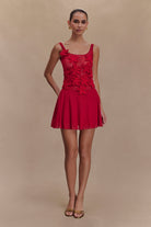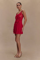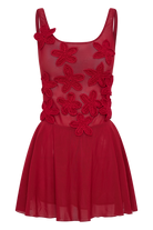 Melanie Mesh Mini Dress With Flowers - Ruby