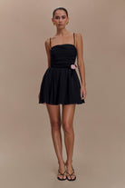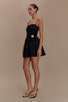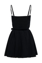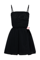 Turn heads in the MISCHA Mesh Mini Dress With Flower, a captivating design that blends boldness with romantic charm. This micro-mini dress features a fitted bodice and ruched detailing that flatters your silhouette, while the gathered mini skirt adds playful movement. The velvet contrast waist belt, adorned with an elegant flower detail, defines your waist and creates a striking focal point. Fully lined for comfort and confidence, this dress is perfect for special occasions, nights out, or any event where you want to make a lasting impression.