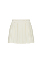 MURA is a classic mini skirt with a low- to mid-rise waist and box pleats. Sewn from unlined polyester, this skirt is a comfortable, contemporary piece with a loose fit and skater-esque cut. The side zipper and adjustable waistband with functional belt loops allow for a moderately custom fit. Its simple silhouette is versatile and timeless, making it the ideal partner for a classic suiting combo.