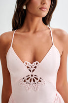 Muriel Cotton Mini Dress With Crochet - Powder Pink