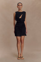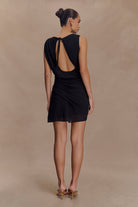 Make a statement in the ORIA Chiffon Mini Dress, where ethereal design meets modern allure. This elegant piece features an asymmetrical neckline with a bold cutout and a draped neckline and waist detail that flatters your silhouette. The open back, secured by a delicate back neck tie, adds a touch of drama, while the flowing chiffon mini skirt creates a graceful finish. Perfect for formal occasions or evening soirées, this dress ensures you captivate from every angle.