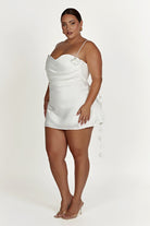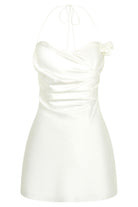 The OTILLIE has been designed to be the perfect Mini Dress for an intimate garden wedding or as a playful second outfit after the big event. The removable brooch flower adds a delicate touch and can be removed if you prefer. It features a detachable halter tie, pleated neckline and functional buttons at the shoulders for added flair.