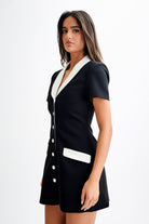 Paolina Collared Contrast Suiting Mini Dress - Black/White