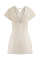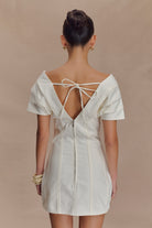 The PASCALE Off Shoulder Denim White Dress brings a fresh take to feminine tailoring. Designed with a Bardot neckline and crossover detail at the front and back, this mini silhouette combines sculptural shape with flattering pleat accents through the bodice. A fitted waist enhances the form, while the mini length keeps it modern and playful. Finished with a back zip for a seamless fit, this dress is your go-to for elevated denim with a romantic twist.
