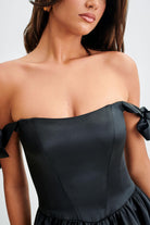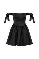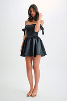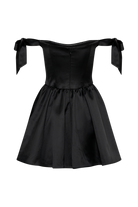Rita Satin Mini Dress With Bow Sleeves - Black
