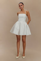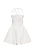 The RUBY Halter Mini Dress is a stunning embodiment of playful sophistication and effortless glamour. With its round neckline and fitted bodice, this dress accentuates the figure beautifully, while the full gathered skirt adds a touch of playful volume. The buckle detail on the straps and wrap-around adjustable straps offer a customizable fit and a chic, contemporary edge. The mini length showcases a youthful charm, and the lined construction ensures a smooth, comfortable fit. Finished with a convenient side zip, the Ruby Dress is perfect for making a memorable entrance at any special occasion.