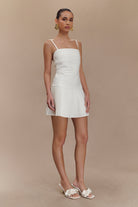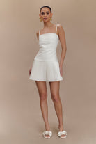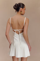 Step into a world of elegance with the RYLEE Multi Pleat Mini Dress, designed to elevate your wardrobe with its charming details. This dress features adjustable straps for a perfect fit and a tie and zip back closure for added security. The fitted bodice beautifully accentuates your figure, while the pleated panelling introduces a sophisticated texture. The gathered lower skirt flows effortlessly, making this mini-length dress perfect for twirling at parties or enjoying a day out. Fully lined for comfort, this dress is the ideal choice for those who want to blend style and grace seamlessly.