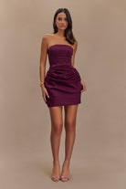 Sasha Taffeta Strapless Corset Mini Dress - Plum