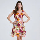 • Sleeveless Elegance: The Sky - Floral Mini Dress features a chic sleeveless design that highlights your shoulders and adds a fresh, summery touch to your look. Perfect for warm days, it offers a playful yet elegant vibe that never goes out of style.