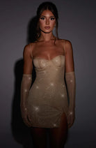Dazzle the Night Away in the Sylvana Sparkly Mini Dress with Gloves