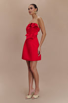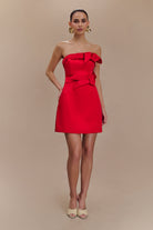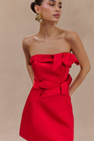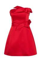 Tatiana Satin Strapless Bow Mini Dress - Red