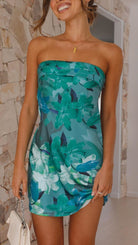 Feel irresistible and confident in the Vanity - Floral Strapless Mini Dress. This enchanting mini dress combines sophisticated floral motifs with a fashionable strapless design, perfect for any occasion. The lightweight, breathable fabric ensures ultimate comfort, while the flattering fit highlights your natural beauty. Ideal for summer parties, romantic dinner dates, or a day out on the town.