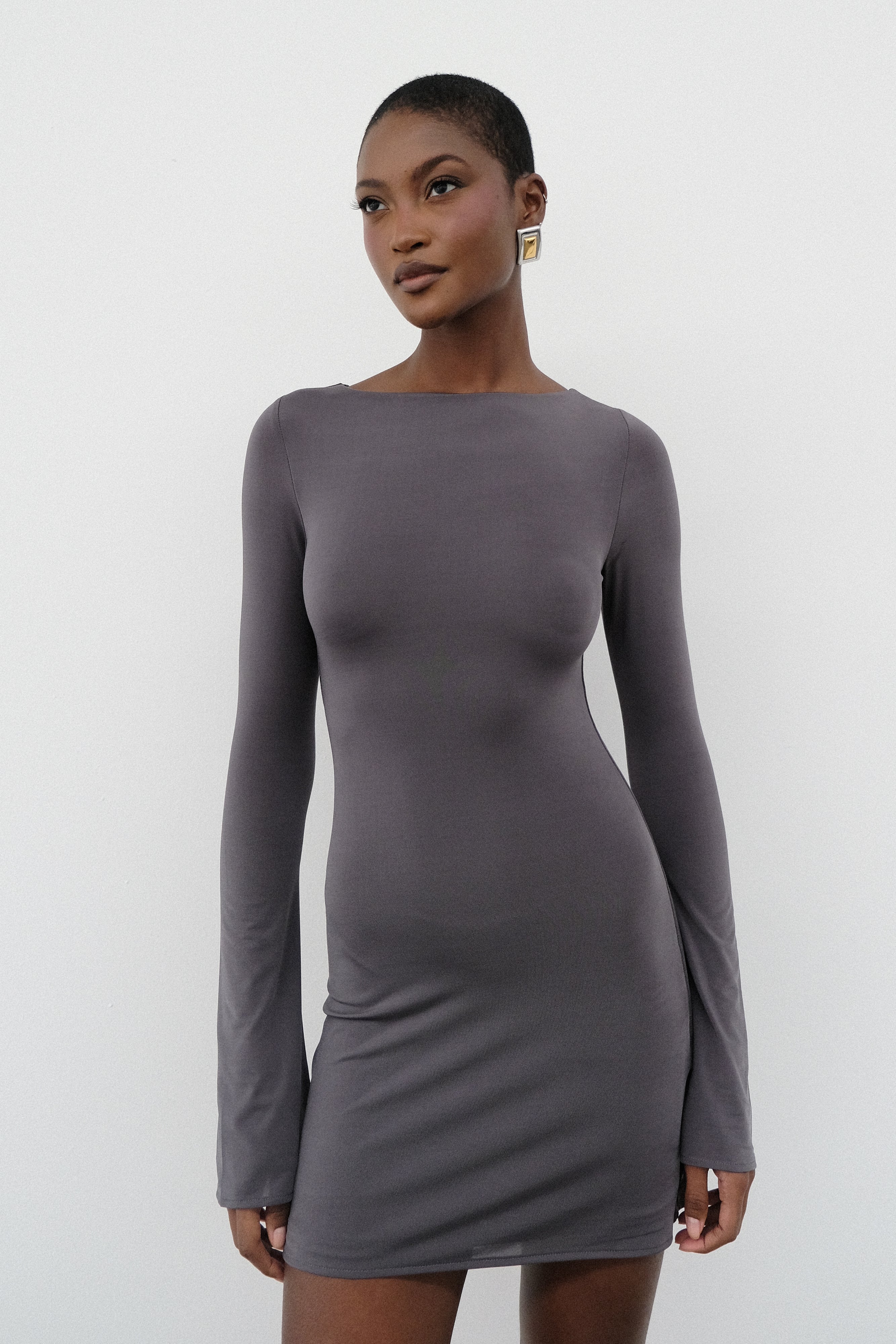 Tarna Slinky A-Line Mini Dress - Charcoal