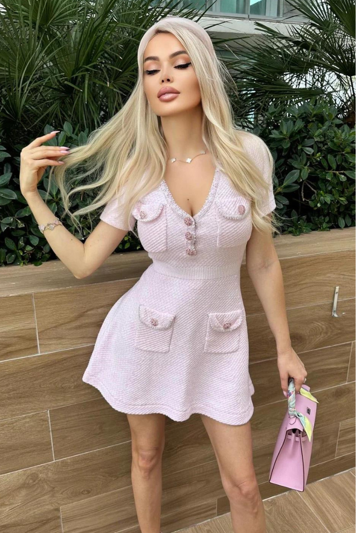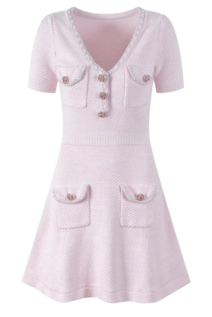 Zevuri - Knitted Bodycon Pocket Detail Mini Dress