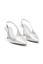 DASHA is a pair of two-inch heels with elasticated back straps and pointed toes. Minimalist and elegant, these faux leather shoes are perfect for desk-to-dinner affairs. The pointed toe design creates an elongated silhouette that pairs well with flared pants and fitted skirts. The elasticated back straps and fairly low heel leads to a comfortable fit that’s ideal for all-day wear. If you need an ‘everything’ shoe, Dasha is the perfect accessory.