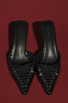 The JOANNE Patent Lace Up Heels are a striking combination of modern style and timeless sophistication. Featuring a pointed toe and mule fit, these heels exude effortless chic. The eyelet lace-up front detail adds a touch of edge, while the sleek patent finish and stiletto heel bring a polished, statement-making finish. Perfect for adding drama to any outfit, these heels are your go-to for a standout look.