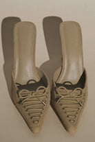 The JOANNE Suede Lace Up Heels blend timeless sophistication with a modern edge. Designed with a pointed toe and mule fit, these heels offer a sleek and versatile silhouette. The eyelet lace-up front detail adds a bold, unique touch, while the soft suede finish and stiletto heel complete the look with understated luxury. Perfect for elevating any ensemble, these heels are a must-have for effortlessly chic style.