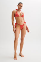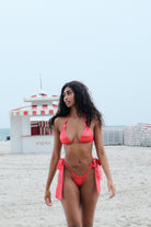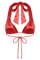The DANIKA Satin Knot Bikini Top combines elegance with versatility for a chic swimwear option. Designed with functional halter straps and triangle bust cups, this bikini top ensures a flattering and supportive fit. The adjustable underbust tie allows for a customisable fit, while the knot detail on the straps adds a sophisticated touch. Made from luxurious satin fabric, this bikini top is perfect for a stylish and comfortable day by the water. Complete the look with the Danika Satin Knot Bikini Bottom.
