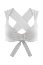 The MERIDA Pearl Bikini Top is a refined take on classic swimwear, blending elegance with modern detailing. Designed with a flattering princess neckline, this top enhances the bust with a soft, sculpted shape. The adjustable crossover back straps ensure a customized fit, while the pearl front detail adds a touch of sophistication. Fully lined for comfort and support, this top pairs perfectly with the Merida Pearl Bikini Bottom for a statement swim look that exudes confidence and effortless glamour.