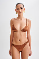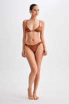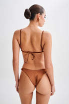 The MICHELLE Pleated Bikini Top is the epitome of modern beach glamour. With triangle bust cups offering a flattering fit, it accentuates your curves with sophistication. Adjustable shoulder straps ensure customisable and comfortable wear, while the tie underbust strap adds a playful touch. The pleated bust detail adds texture and dimension, elevating the design to new heights of style. Whether lounging poolside or soaking up the sun on the sand, the Michelle Bikini Bottom is your go-to choice for chic and confident beachwear. Pair with the Michelle Cheeky Bikini Bottom to complete the look.