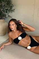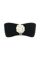 NOREEN is a strapless bikini top with a rose applique at the centre and a semi-sweetheart neckline. Its custom crochet fabrication is lined and stretchy for a comfortable–but still supportive–fit. The high-quality back clasp allows you to adjust the wear as needed. Its centre rose flower applique adds fresh, fanciful vibes that beautifully contrast this top’s clean, minimalist cut.