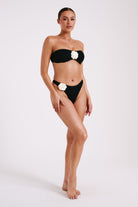 Noreen Rose Contrast Crochet Bikini Top - Black