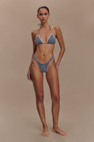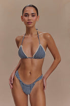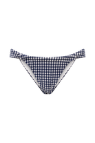 The PERSEPHONE Gingham Bikini Bottoms combine versatility and charm with adjustable coverage and high-rise hip straps that create a flattering silhouette. Crafted from textured gingham fabrication, these bottoms bring a timeless yet playful vibe to your swimwear collection. Pair them with the Persephone Gingham Triangle Bikini Top for a coordinated, beach-ready look that exudes effortless elegance.