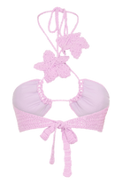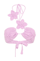 The RIVER Floral Crochet Bikini Top perfectly embodies a blend of bohemian charm and functional design, making it an exquisite choice for beach days or poolside lounging. This top features a cross-front adjustable halter neckline, which allows for a personalised fit and supports varying body types while enhancing the bust area. Crafted from fine crochet, it exudes a handcrafted, delicate aesthetic complemented by charming flower appliqué that adds a vibrant and playful touch. The functional back tie ensures a secure and comfortable fit, allowing you to adjust the tightness as needed. Ideal for those who appreciate intricate details and unique swimwear, this top brings a touch of artisanal beauty to any summertime adventure. Pair with the Skye Floral Crochet Tie Up Bikini Bottom to complete the look.