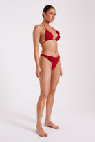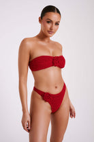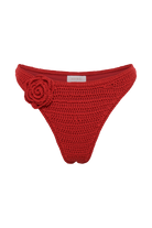 The VALENCIA is a low-rise bikini bottom with a rose flower applique and high-leg cut. Its custom crochet fabrication is stretchy and lined for comfortable all-day wear. It offers modest coverage while hugging curves to further flatter your silhouette. The rose flower applique at the right-hand side adds a fresh twist on the classic bikini bottom cut. Pair with the Noreen Rose Crochet Bikini Top to complete the set.