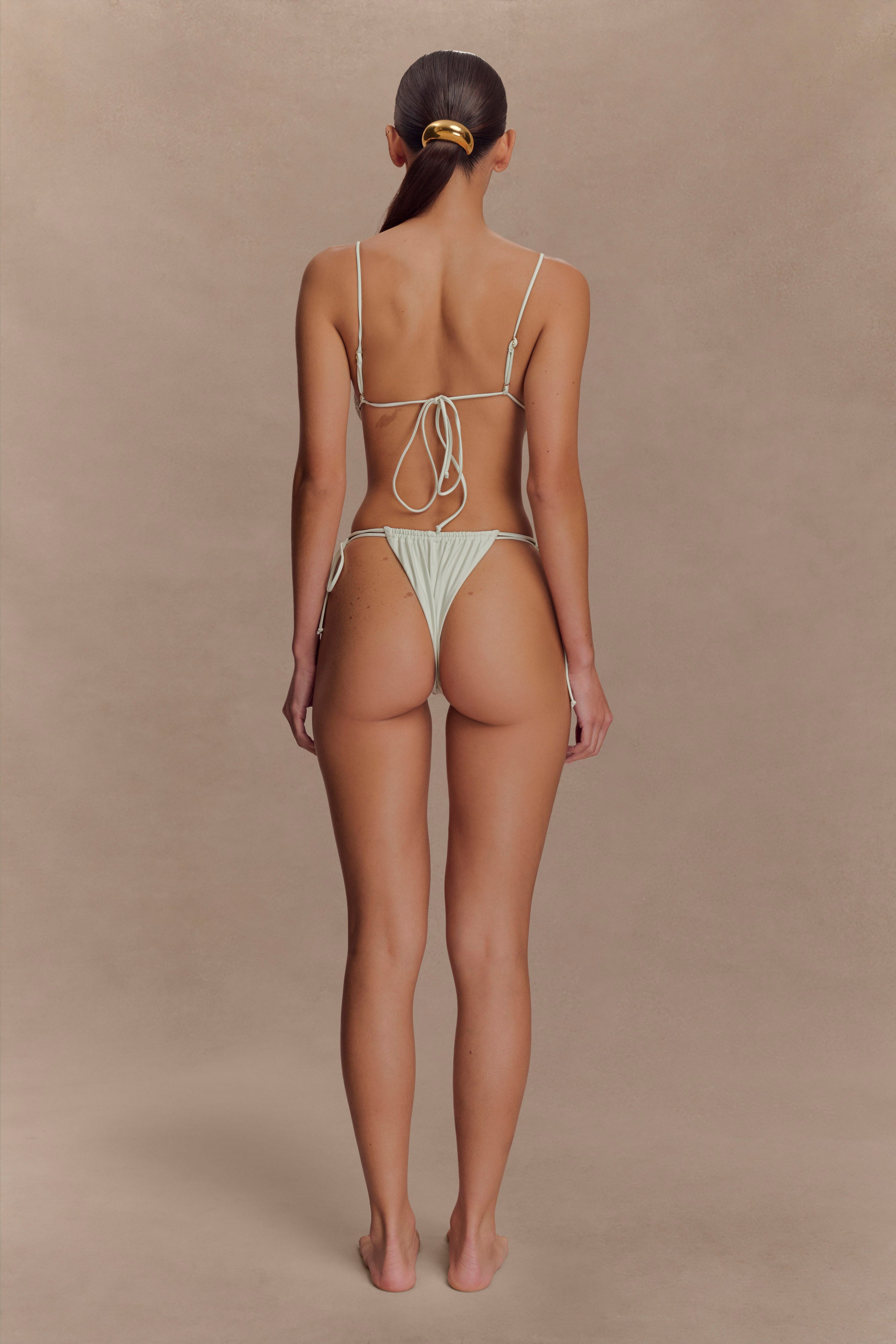 Andie Recycled Nylon Ruched String Side Bikini Brief - Fresh Green