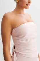 Allegra Satin Ruched Strapless Top - Pale Pink
