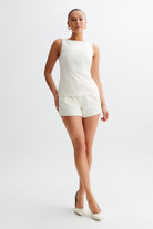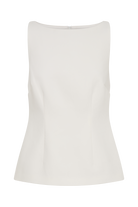 The ANGELA Sleeveless Suiting Top is a sophisticated and versatile piece designed for a polished look. Featuring a boat neckline and contour seam lines, this top creates a flattering and elegant silhouette. The longline cut adds a modern touch, while the sleeveless design ensures comfort and ease of movement. An invisible zip with a hook and eye closure at the back provides a seamless finish. Perfect for both professional and casual settings, this suiting top is a stylish addition to any wardrobe.