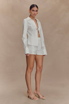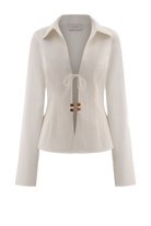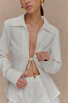 The ANNALEE Cotton Beaded Tie Shirt brings a playful twist to classic shirting. Crafted from lightweight cotton, this unlined style features a sharp collar, long sleeves, and a tie-front waist finished with delicate beaded ends for a touch of texture and charm. Button cuffs add structure, while the relaxed fit keeps it easy and versatile. Pair with the Annalee Cotton Shorts for a coordinated set that’s perfect for warm days, city strolls, or sun-drenched getaways.