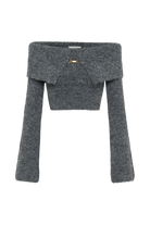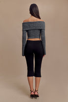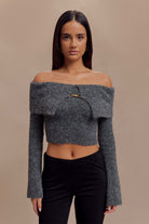 Baxter Off Shoulder Fluffy Knit Top - Charcoal