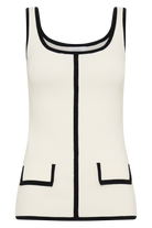 The BECKY Contrast Knit Longline Top is the epitome of refined elegance. Designed with a graceful scoop neckline and contrast trimming, this piece offers a sophisticated aesthetic that speaks volumes. The twin non-functional pockets at the hips subtly enhance the silhouette, while the longline fit delivers a flattering, elongated form. Introduce this versatile essential into your wardrobe for this season and beyond.