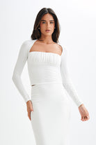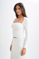 The BILLIE Slinky Ruched Long Sleeve Top combines elegance and comfort, making it a versatile addition to your wardrobe. This top features a straight neckline that offers a modern, clean look, while the ruched bust panel adds a touch of texture and visual interest. The lined bodice ensures a smooth and comfortable fit, and the long sleeves provide coverage while maintaining a chic silhouette. Perfect for both casual outings and dressier occasions, the Billie Slinky Ruched Long Sleeve Top is a stylish choice that effortlessly enhances any outfit.