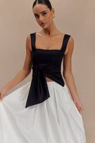 Step into elegance with the BRYONY Satin Structured Sleeveless Top, where modern design meets refined style. Featuring a chic square neckline, this top showcases a fitted bodice that flatters your figure with its tailored design. The asymmetrical hemline adds a unique twist, creating an eye-catching silhouette that's both stylish and contemporary. A luxurious sash panel detail at the waist cinchers in for a beautiful hourglass shape, while the centre back zip ensures a secure and seamless fit. Perfect for dressing up for a night out or pairing with your favourite trousers for a polished daytime look, the Bryony top is a must-have for the fashion-forward wardrobe.