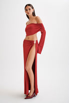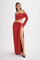 Camryn Slinky Off Shoulder Crop Top - Cherry Red