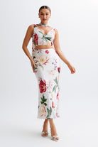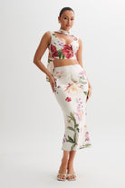 Carla Satin Sleeveless Top With Scarf - Bella Rosa Print