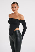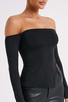 Carmen Recycled Nylon Off Shoulder Top - Black
